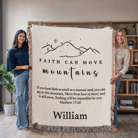 Custom Woven Blanket Personalized Name & Bible Verse Throw Christian Gift For for Men Women Girls Boys Baptism Birthday Valentine Gifts