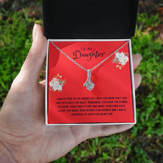 Daughter Gift Necklace - Alluring Beauty - I Am Excited Red Card