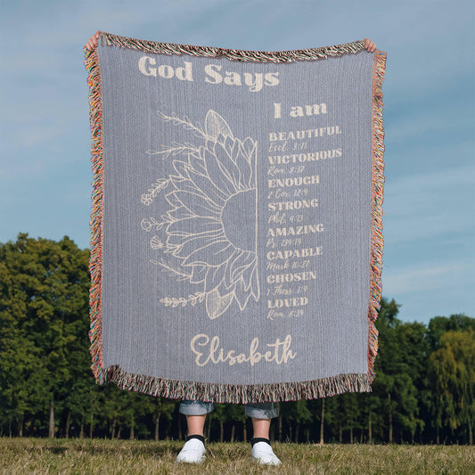 Custom Woven Blanket Personalized Name Throw Blanket God Says I Am Christian Gift For for Her Women Girls Baptism Birthday Valentine Gifts