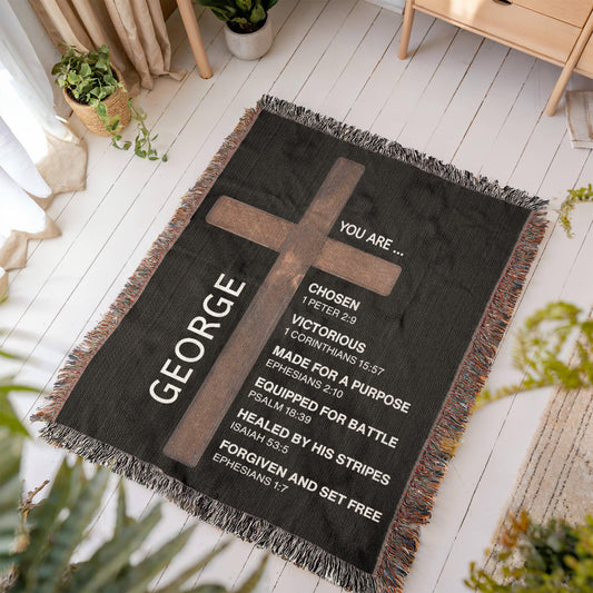 Custom Woven Blanket with Cross Personalized Name Throw Blanket Christian Gift For for Men Women Teens Boys Baptism Birthday Valentine Gifts