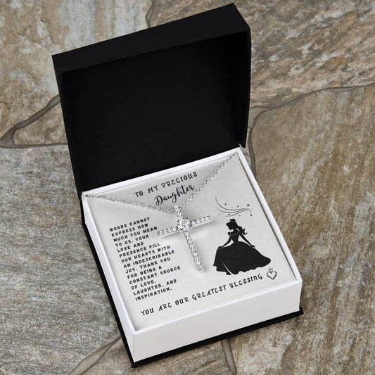 Daughter Gift Necklace - Crystal Cross Necklace - Words Cannot Express White Card