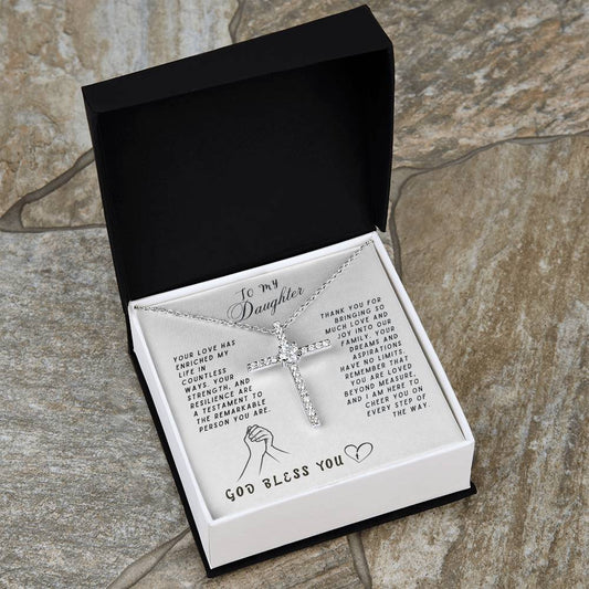 Daughter Gift Necklace - Crystal Cross Necklace - God Bless You White Card
