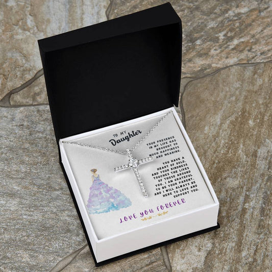 Daughter Gift Necklace - Crystal Cross Necklace - Your Presence In My Life White Card