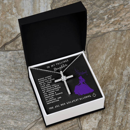 Daughter Gift Necklace - Crystal Cross Necklace- Words Cannot Express Black Card
