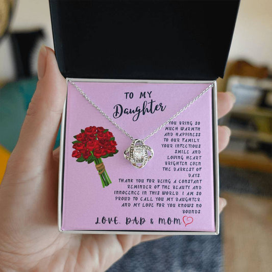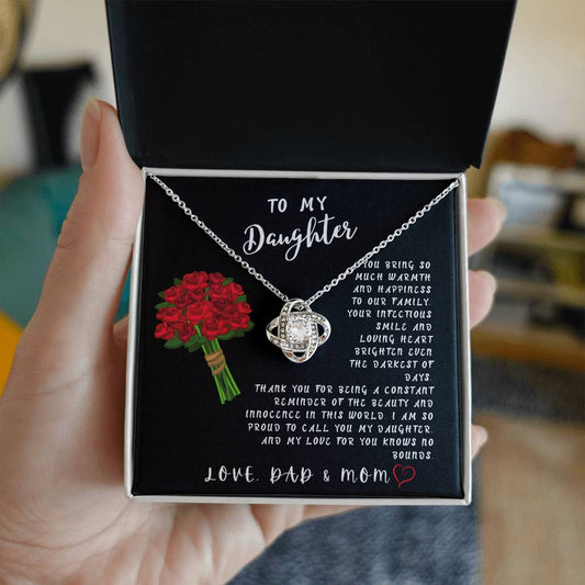 Daughter Gift Necklace - Love Knot - Bring So Much Warmth Black Card