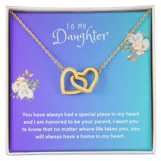 Daughter Gift Necklace - Interlocking Hearts - In My Heart White Card