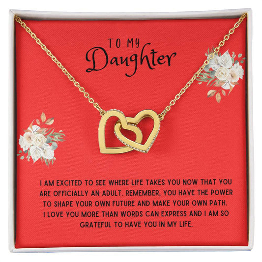 Daughter Gift Necklace - Interlocking Hearts - - I Am Excited Red Card