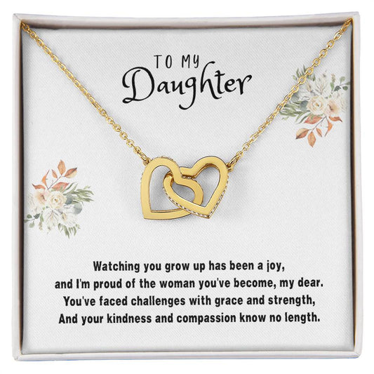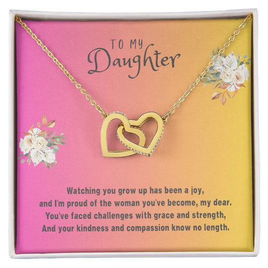 Daughter Gift Necklace - Interlocking Hearts - Watching You Grow White Card