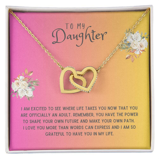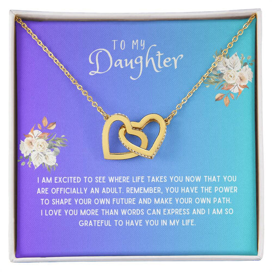 Daughter Gift Necklace - Interlocking Hearts - I Am Excited White Card