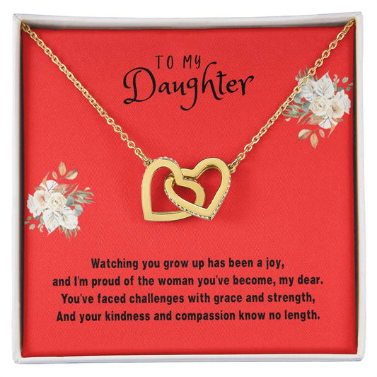 Daughter Gift Necklace - Interlocking Hearts - Watching You Grow Red Card
