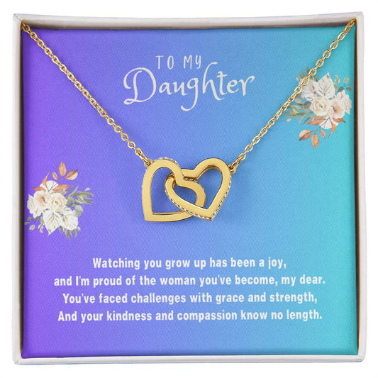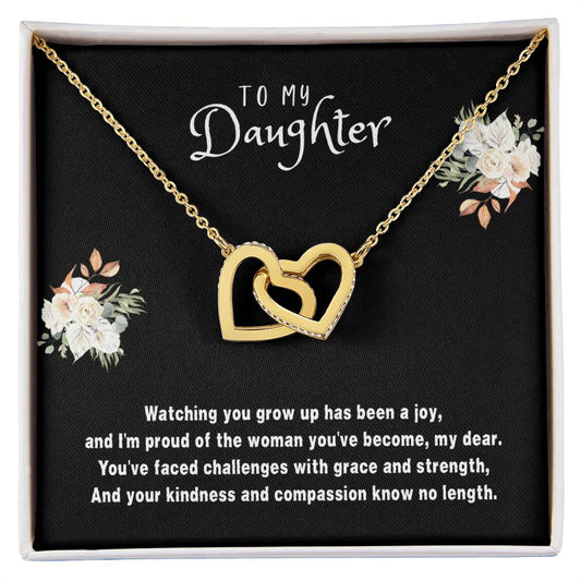 Daughter Gift Necklace - Interlocking Hearts - Watching You Grow Black Card