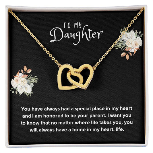 Daughter Gift Necklace - Interlocking Hearts - In My Heart Black Card