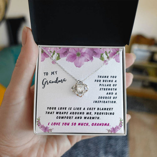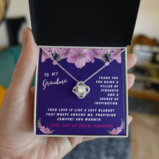 Grandmother Gift Necklace - Love Knot - Cozy Blanket White Card