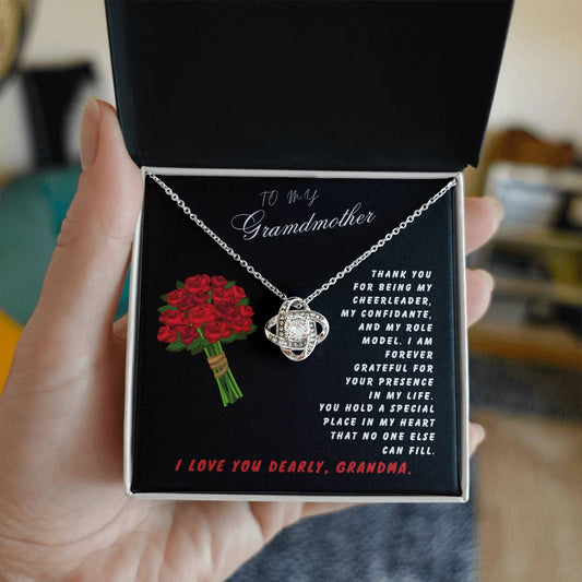 Grandmother Gift Necklace - Love Knot - Roses Black Card