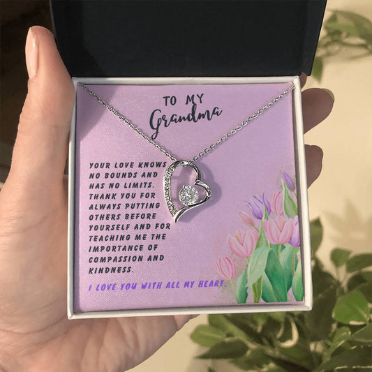 Grandmother Gift Necklace - Forever Love - Love Knows No Bounds Pink Card