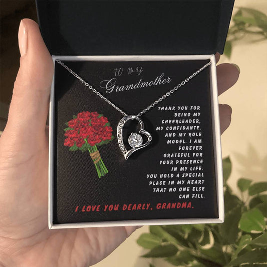 Grandmother Gift Necklace - Forever Love - Roses White Card