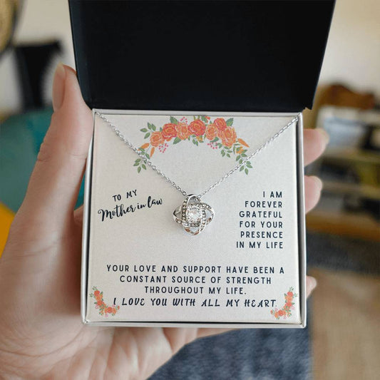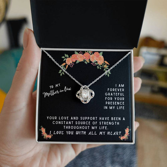 Mother In Law Gift Necklace - Love Knot - Forever Grateful Black Card