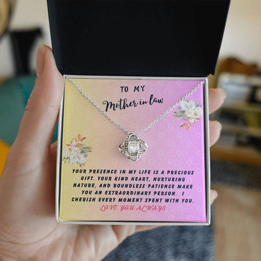Mother In Law Gift Necklace - Love Knot - Precious Gift White Card