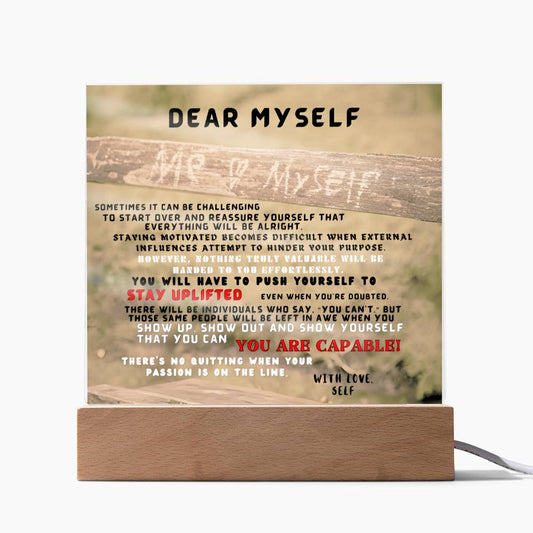 Square Interior Decor - Dear Myself Wood (With Night Light Option)
