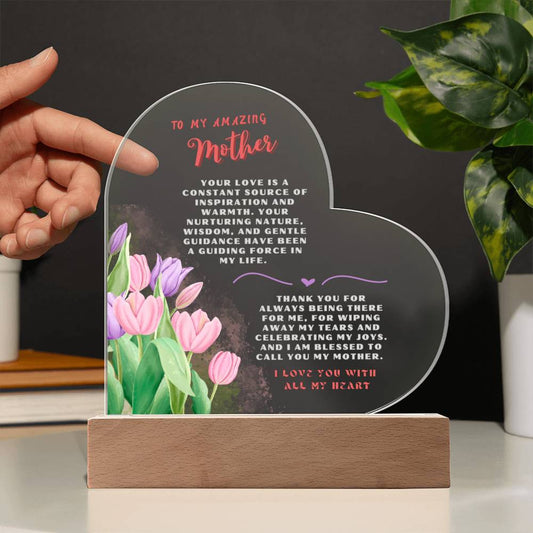 Mother Gift - Heart Interior Decor - Tulips (With Night Light Option)