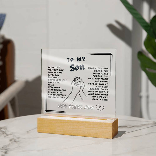 Son Gift - Square Interior Decor - God Bless You (With Night Light Option)