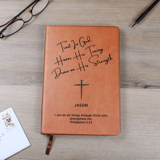 Personalized Leather Journal with Cross - Custom Name and Bible Verse Prayer Journal