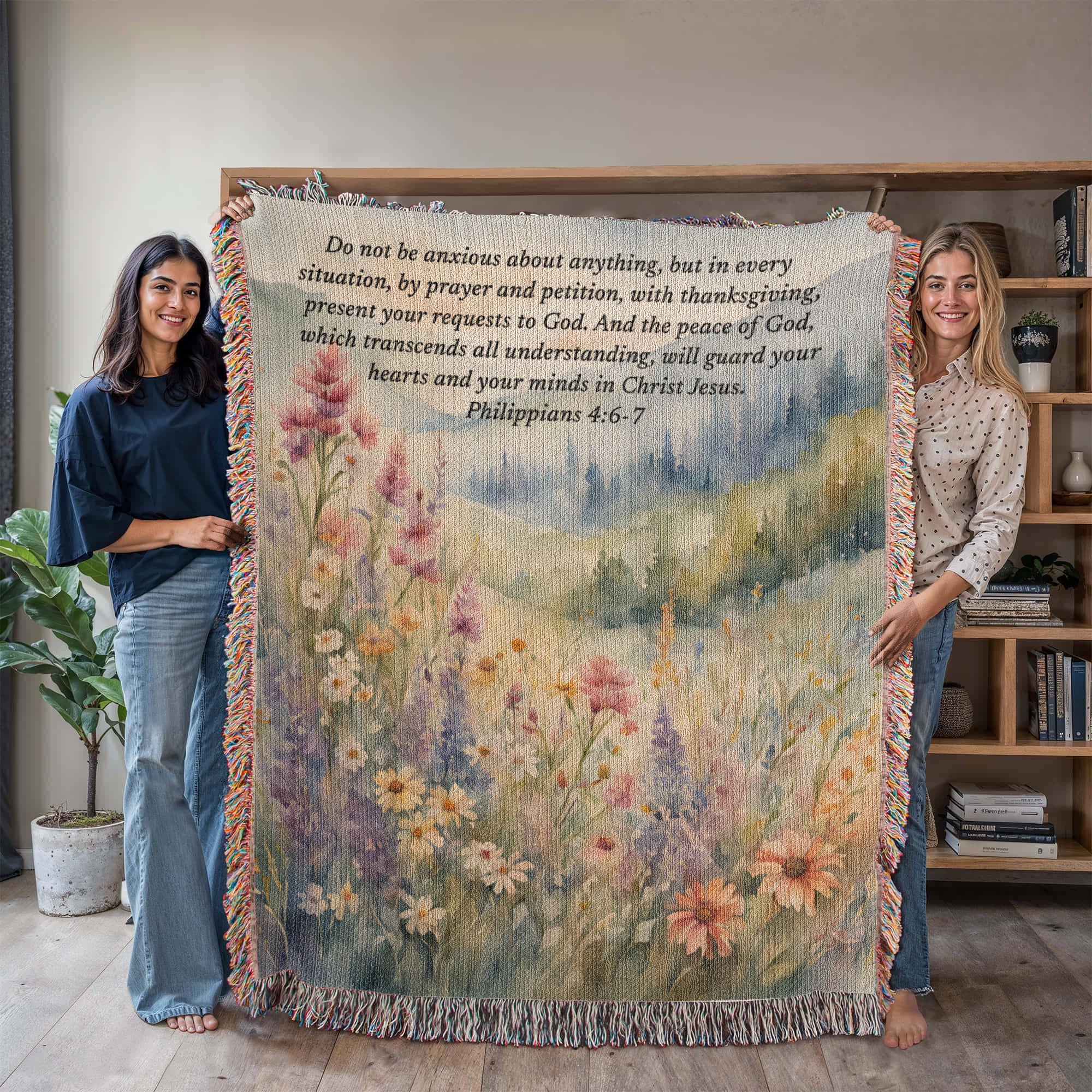 Personalized Woven Blanket with Bible Verse Wildflower Art Throw Bible Art Print Floral Scripture Christian Gift For Him Her