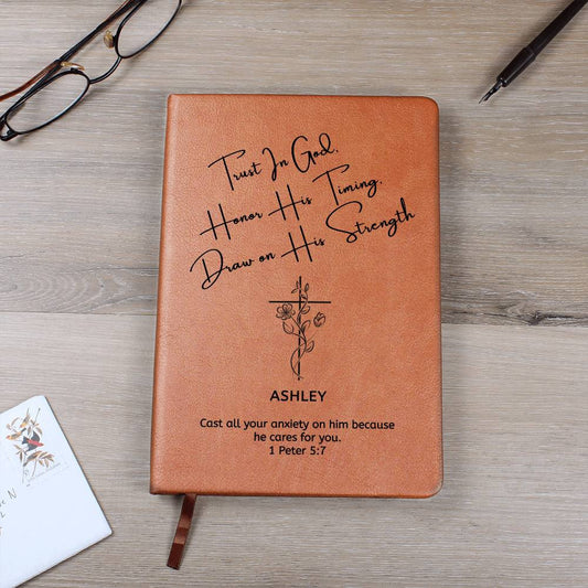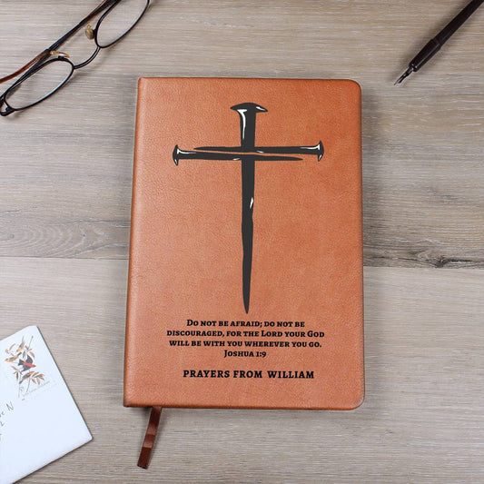 Personalized Leather Journal with Cross - Custom Name and Bible Verse Prayer Journal