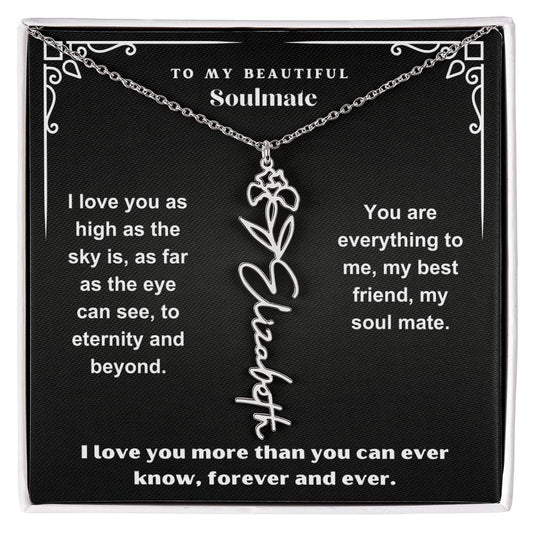 Personalized Gift Necklace - Birth Flower Name Necklace Black Card
