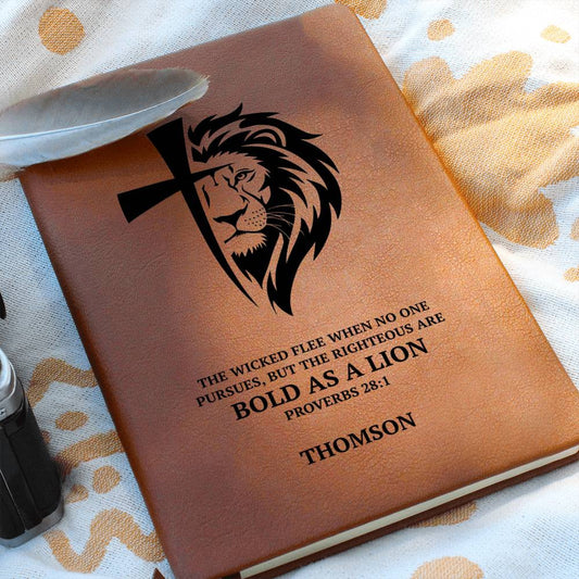 Personalized Leather Journal with Lion Cross Custom Name & Bible Verse Prayer Journal For Men Husband Boyfriend Son Grandson Retirement Gift