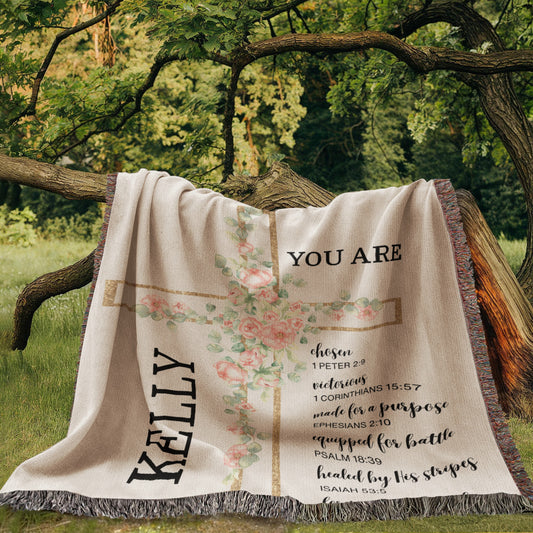 Custom Woven Blanket Personalized Name & Bible Verse Throw Christian Gift For for Men Women Girls Boys Baptism Birthday Valentine Gifts