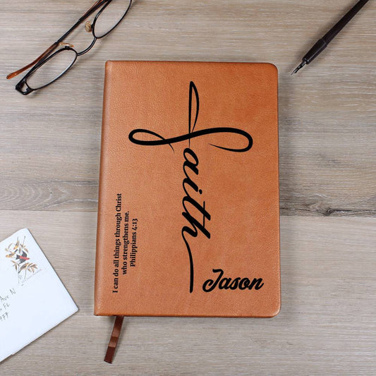 Personalized Faith Prayer Journal, Custom Name and Bible Verse Leather Notebook, Goal Journal for Men and Women, Christian Catholic Gifts