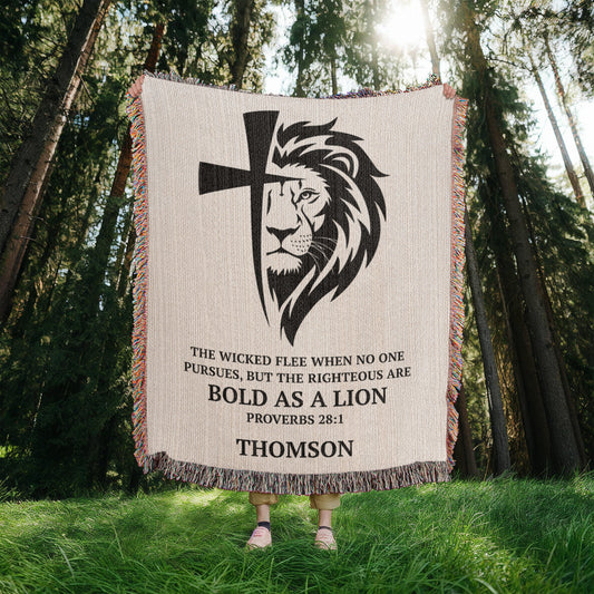 Personalized Woven Blanket with Lion Cross, Custom Name Blanket, Christian Gift For Men Women Teens Husband Boyfriend Father Son Daughter