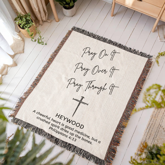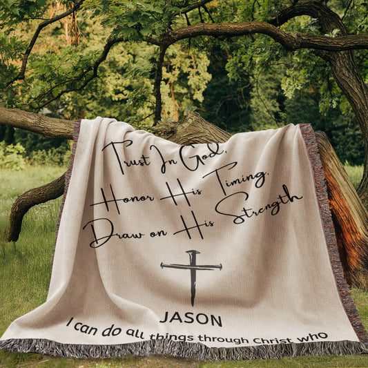Personalized Woven Blanket with Cross Custom Name and Bible Verse Throw Blanket Christian Gift For Him Her Husband Boyfriend Son Grandson